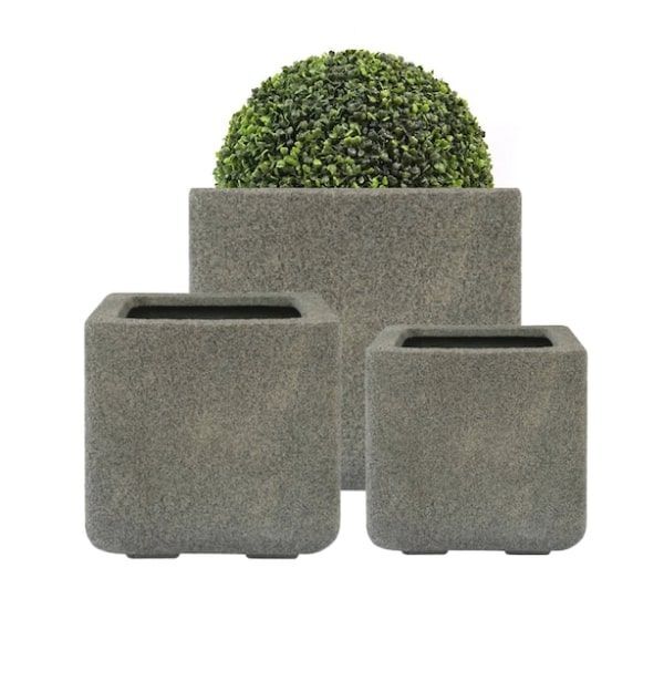 Firkantet udendørs frostsikker krukke i grå fiberstone med sandstruktur - 3 størrelser
