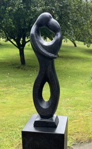 Flot enkel haveskulptur der kan findes plads til overalt, både indendørs og udendørs. Soklen giver tyngde og skulpturen lethed.