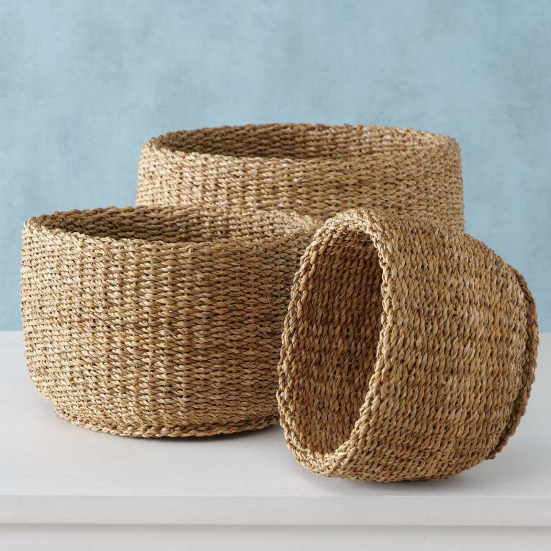 3stk flotte holdbare og rustikke kurve i flettet søgræs - lavet i hånden og skaber det lækre naturlige miljø i hjemmet.