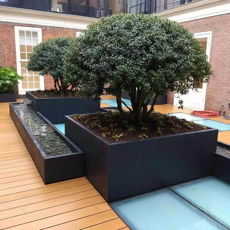 Også i storbyen på hustage og i gårdhaver, bruges de helt store plantekasser og plantekummer til fælles nydelse for beboerne og skaber den stemning af natur og ro som vi alle har brug for. Disse mega krukker bruges også indendørs hvor der virkelig kan skabes intens flora med planter og blomster, som samtidig bidrager væsentligt til et bedre indeklima.