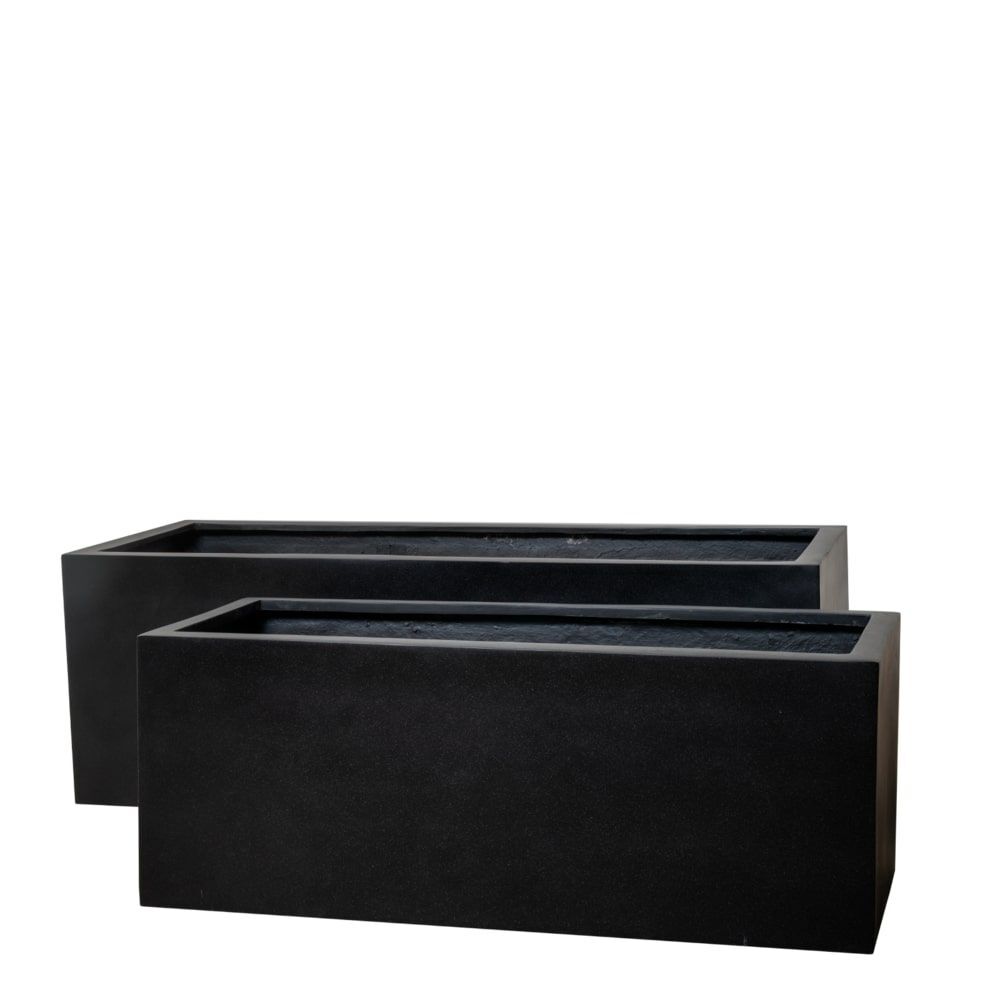 L.150cm + L.120cm aflange sorte plantekasser i glasfiber med let nistret glat overflade - 5 års garanti