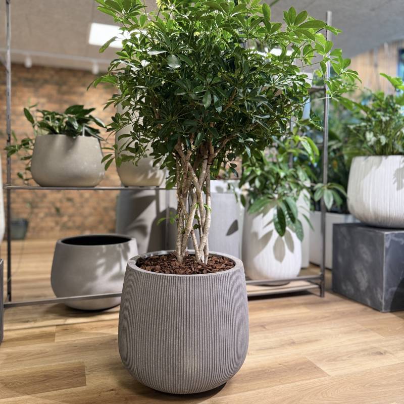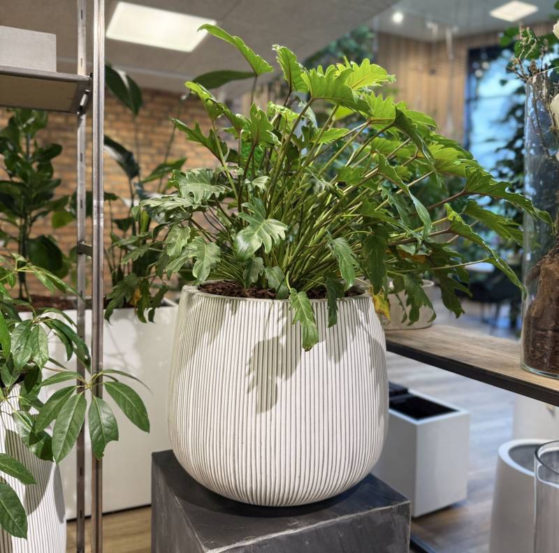 Lækkert moderne design i holdbar kvalitet - Krukken er fremstillet i mat fiberstone med riflet overflade og kan anvendes ude og inde.