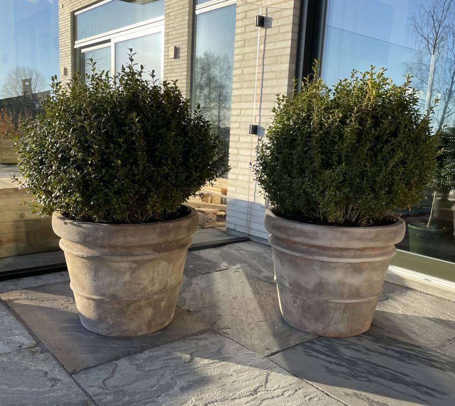 Frostsikker klassisk terracotta havekrukke i lys choko - H.40xØ.50cm