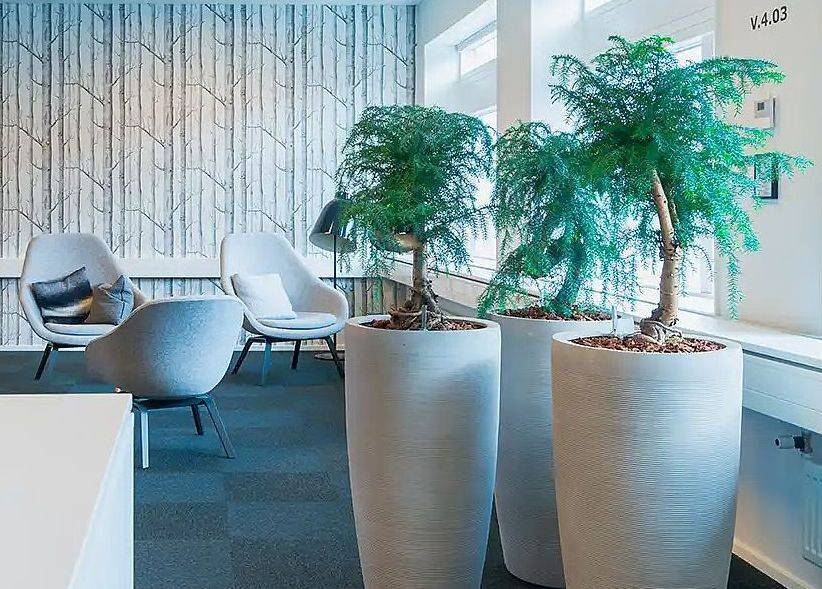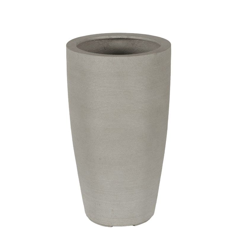 Rigtig flot og stilsikker frostsikker stor krukke i fiberstone / glasfiber med vertikale striber. Denne krukke er en letvægtsmodel. Overfladen er med let sandstruktur i mat finish.