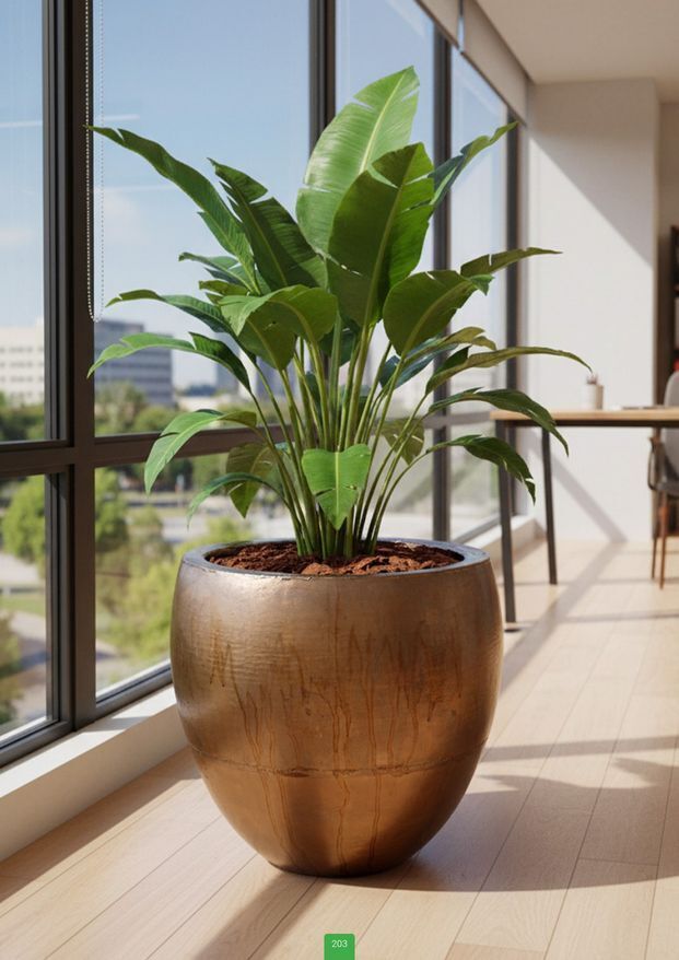 Lækker form med super flot golden oxyd finish - Til indendørs brug eller overdækket udendørs. Leveres uden bundhul.