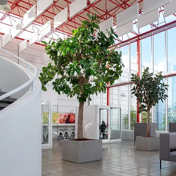 Store dimensioner = store planter og træer indendørs. Her får du en nem løsning med en stor plantekrukke i fiberstone materiale med skjulte hjul. Krukken er lavet i stærk mat fiberstone materiale med mat finish.