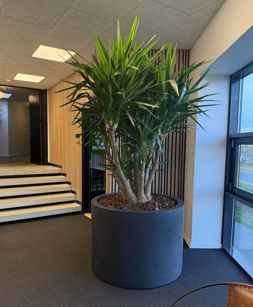 I kontormiljøer og fællesarealer bidrager grønne planter til ro, fokus og trivsel. De reducerer stress, øger velvære og giver et naturligt pusterum i en ellers travl hverdag. Store planter i store krukker fungerer også som diskret støjdæmpning, især i åbne kontorlandskaber eller den store hall, hvor de kan placeres strategisk som små eller store rumdelere.