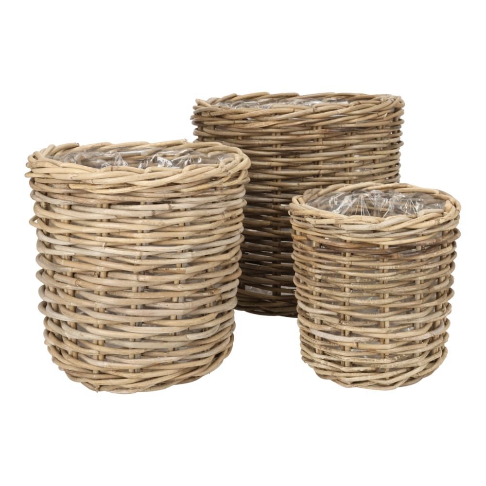 Sæt med 3stk flettede rattanpotter med plastindsats - Ø.27 + 32 + 37cm