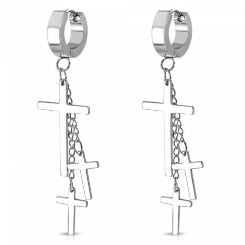 Sæt med 2 stk fede hoop øreringe med 3 hængende kors i kæder på hver creoler.