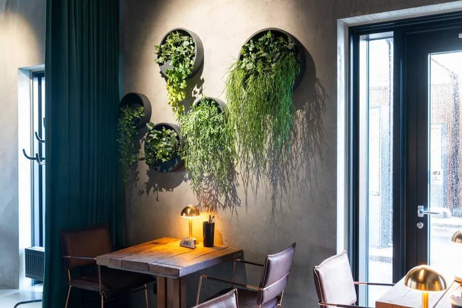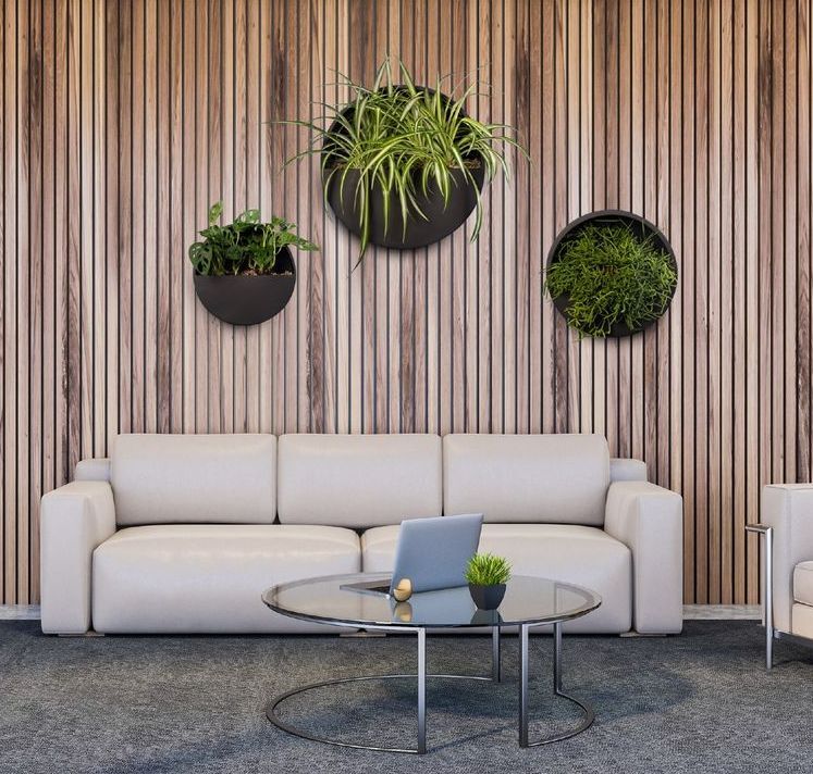 Vandtæt indendørs vægkrukke / ampel i fiberstone materiale til både planter og blomster som dekoration på væggen - super smart vægpotte, f.eks i køkkenet til krydderurter.