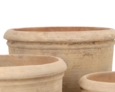 Fin størrelse til både haver og  terrasser - Runde lerkrukker i lys antik choko Terracotta farve som leveres med bundhul. Krukkerne har fået en efterfølgende let antikbehandling som giver det et lidt slidt look.
