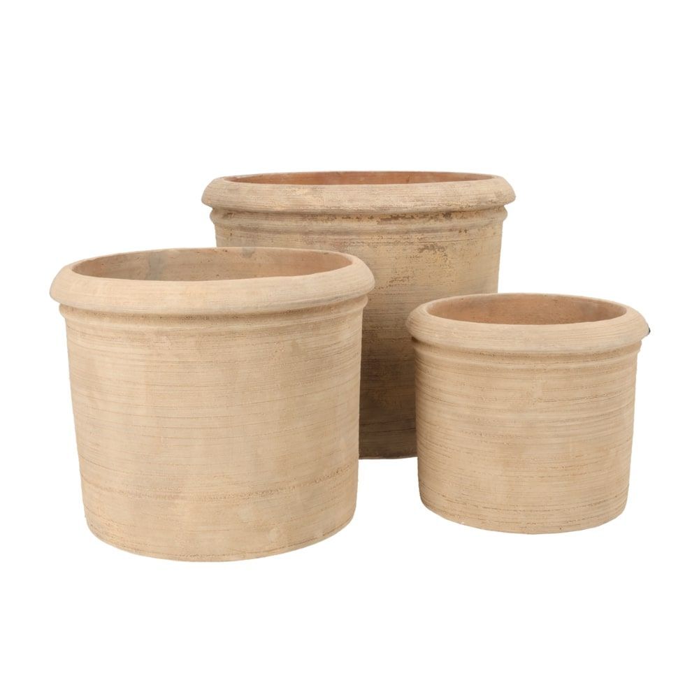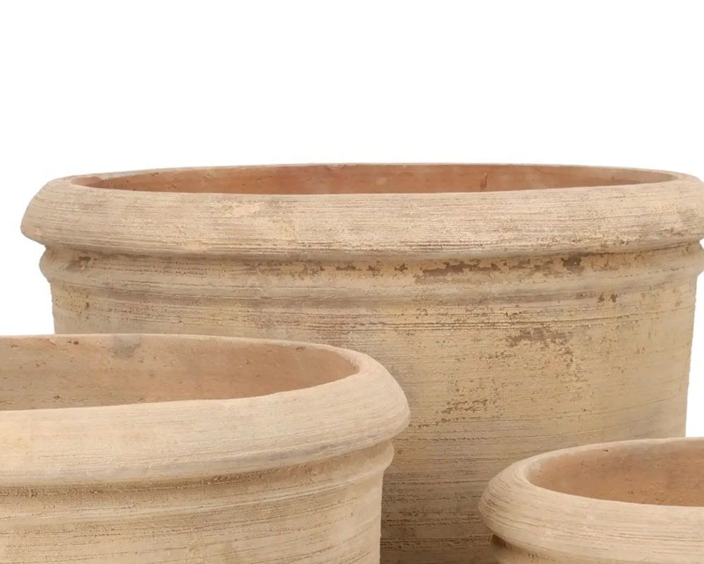 3stk runde Terracotta lerkrukker med let vintage antikbehandling - Ø.34 + Ø.44 + Ø.55cm