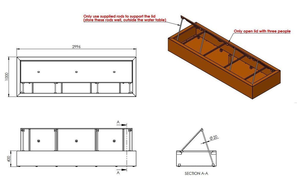 X-Large: L.300xB.60xH.40cm / 165kg / 3 fontæner