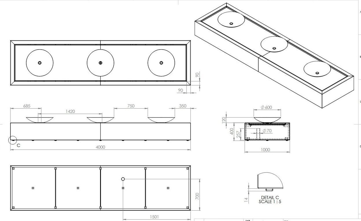 Medium: L.400xB.100xH.52cm / 344kg / 3 fontæner