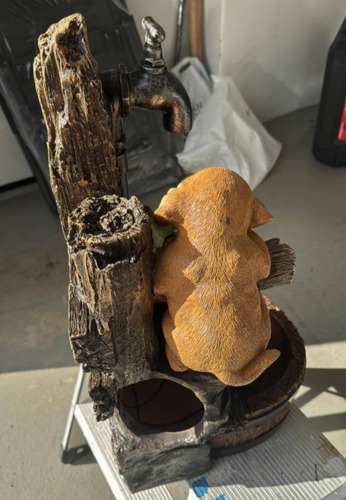 Vandbrønd - Vandfontæne med vandhane hundehvalp og fugl / LED lys